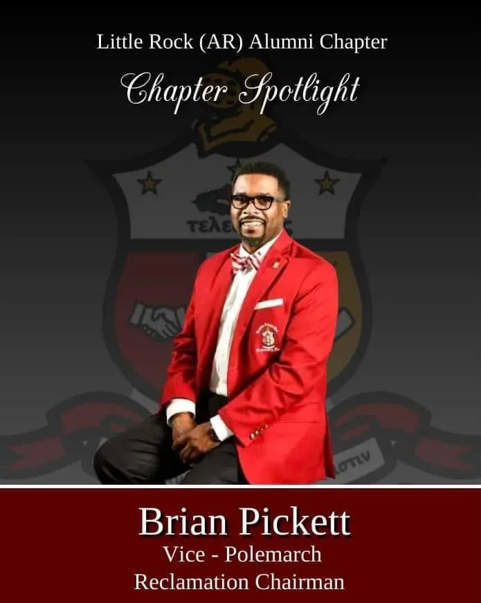 Brother Past Polemarch Antonio Mosby. Brother Mosby is a Fall ‘99 initiate of the Theta Epsilon Chapter. For the LR Alumni Chapter, he serves as Chairman of the Achievement Committee, Chairman of the SW Province March of Dimes, Board of Director (Local and Provincial), and the AR Kappa Caucus Chairman. His dedication to serve in these roles shows his love for the Bond. We appreciate your commitment to our Chapter and to Kappa Alpha Psi Fraternity, Inc.