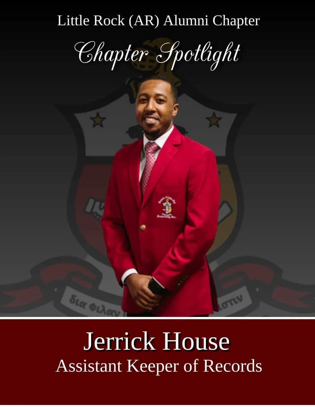 Brother Jerrick House. Brother House is an initiate of the LR Alumni Chapter SP’18. For the Chapter, he serves as the Assistant Keeper of Records. His dedication to serve in these roles shows his love for the Bond and the community. We appreciate your commitment to our Chapter and to Kappa Alpha Psi Fraternity, Inc.